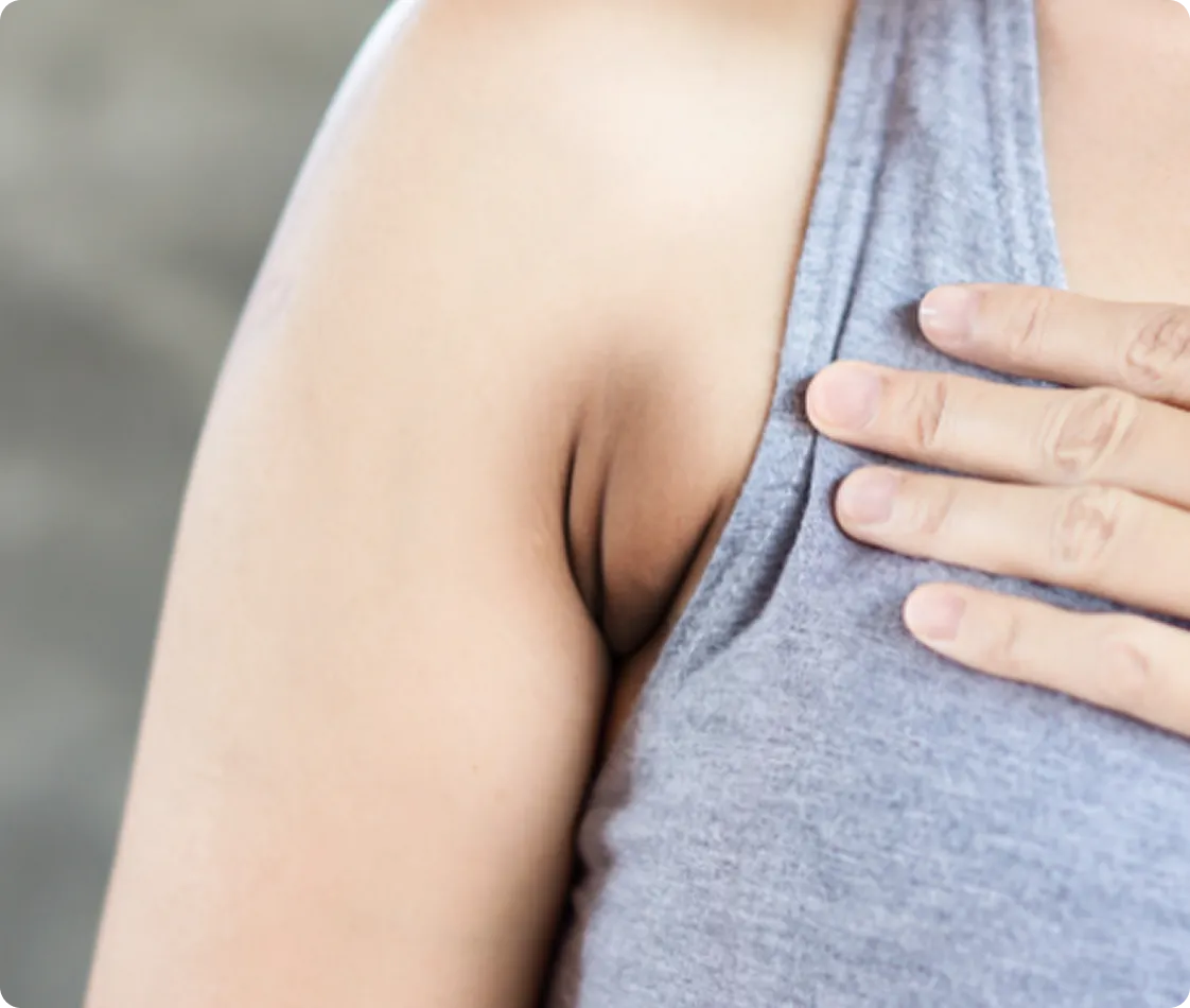 Signs of uneven underarm skin tone include dark patches, discoloration, or a visibly different shade compared to the surrounding skin.