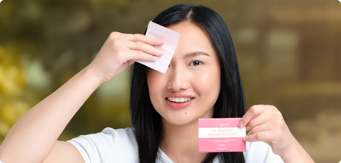 SkinGenie Oil Absorbing Face Blotting Tissue is your pocket-friendly solution to midday shine. It instantly mattifies while treating your skin to the calming benefits of Rose Otto. Housed in a sleek, travel-size pack, it’s a must-have for quick touch-ups—no mess, no stress, no oily residue.