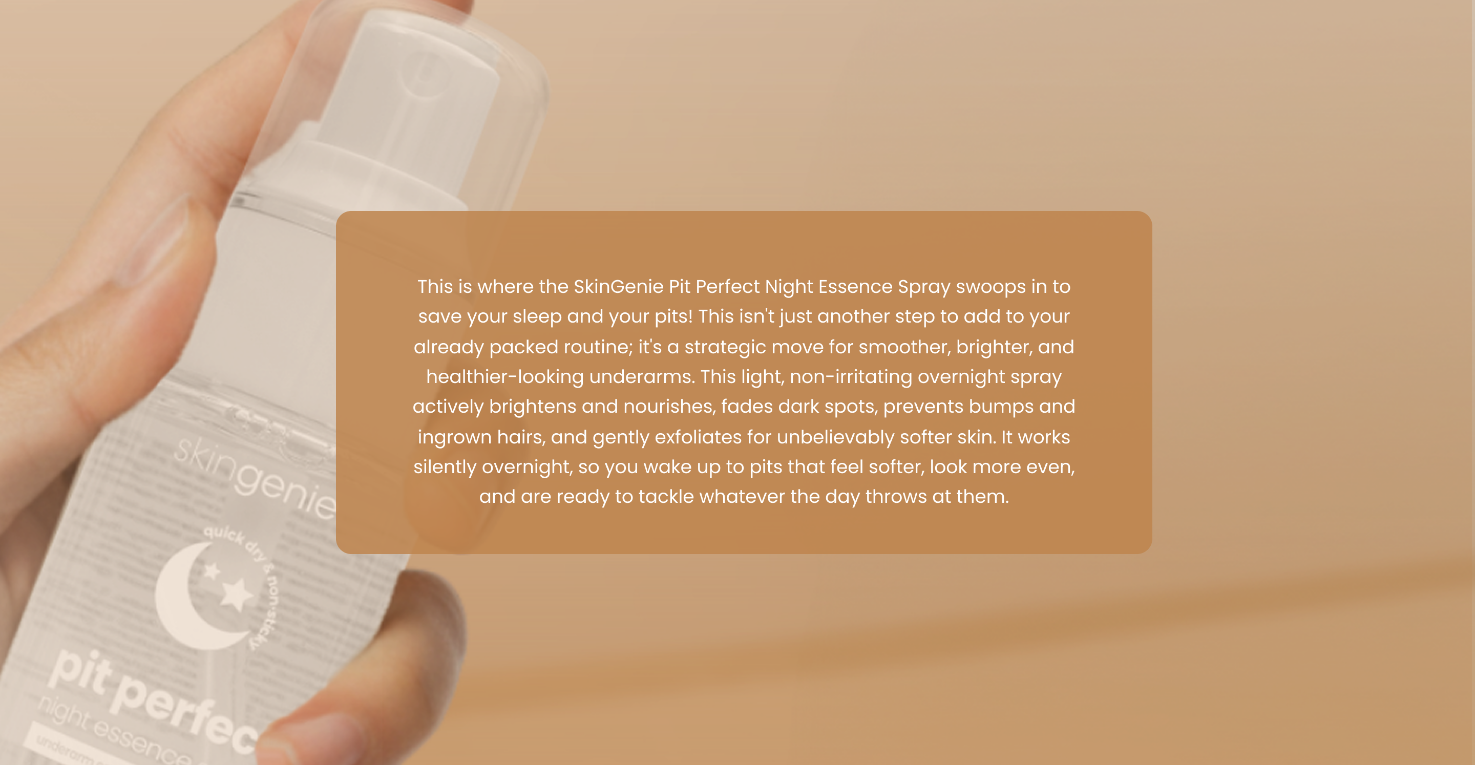 Ready for brighter, smoother pits? Grab your SkinGenie Pit Perfect Night Essence Spray and start your overnight transformation!