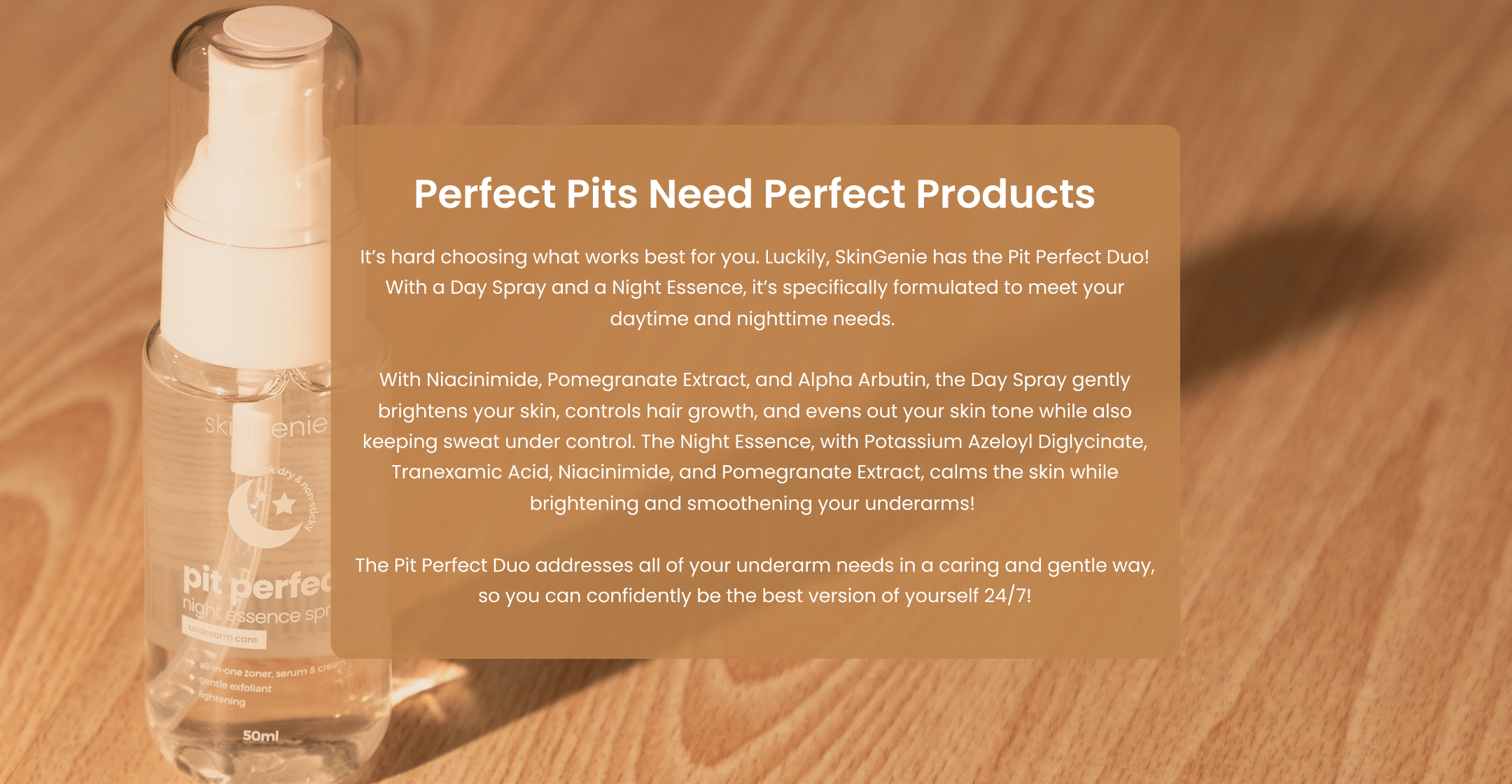 By tailoring your underarm routine to your body’s specific needs, you can achieve better results - no odors, no irritation, and healthier, happier underarms overall. Just like your face, your underarms deserve the same conscious care so switch to SkinGenie now and feel an immediate difference!